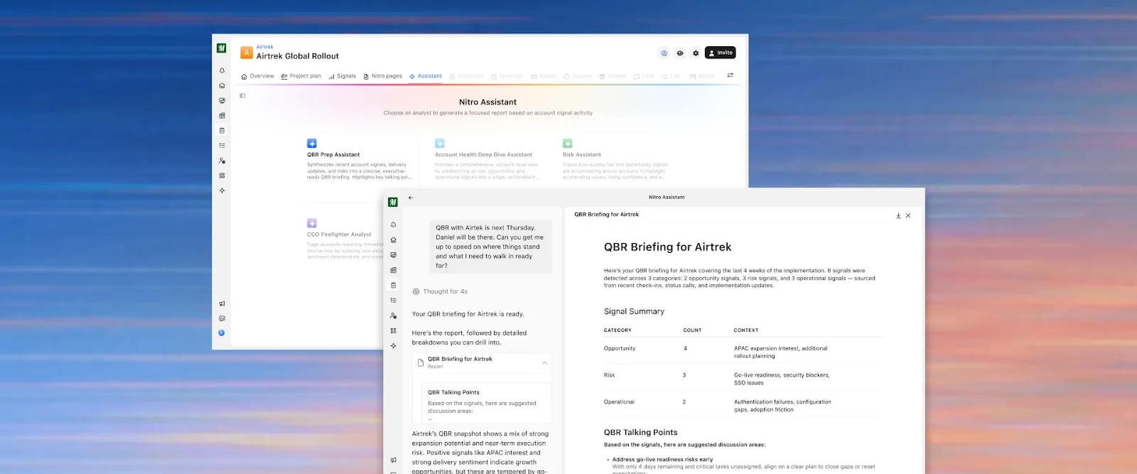 Nitro Assistant turns raw signals into ready-to-use insights. It analyzes signals to generate comprehensive contextual reports.