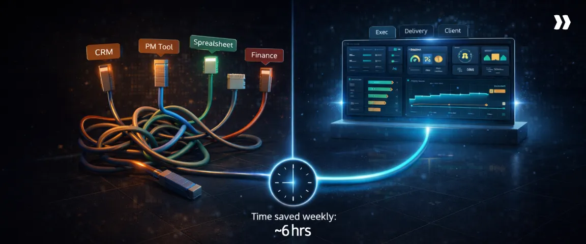 Then the real questions begin: Which projects are drifting toward budget overruns? Which engagements are quietly accumulating delivery risk? The dashboard contains data, but it does not answer these questions.