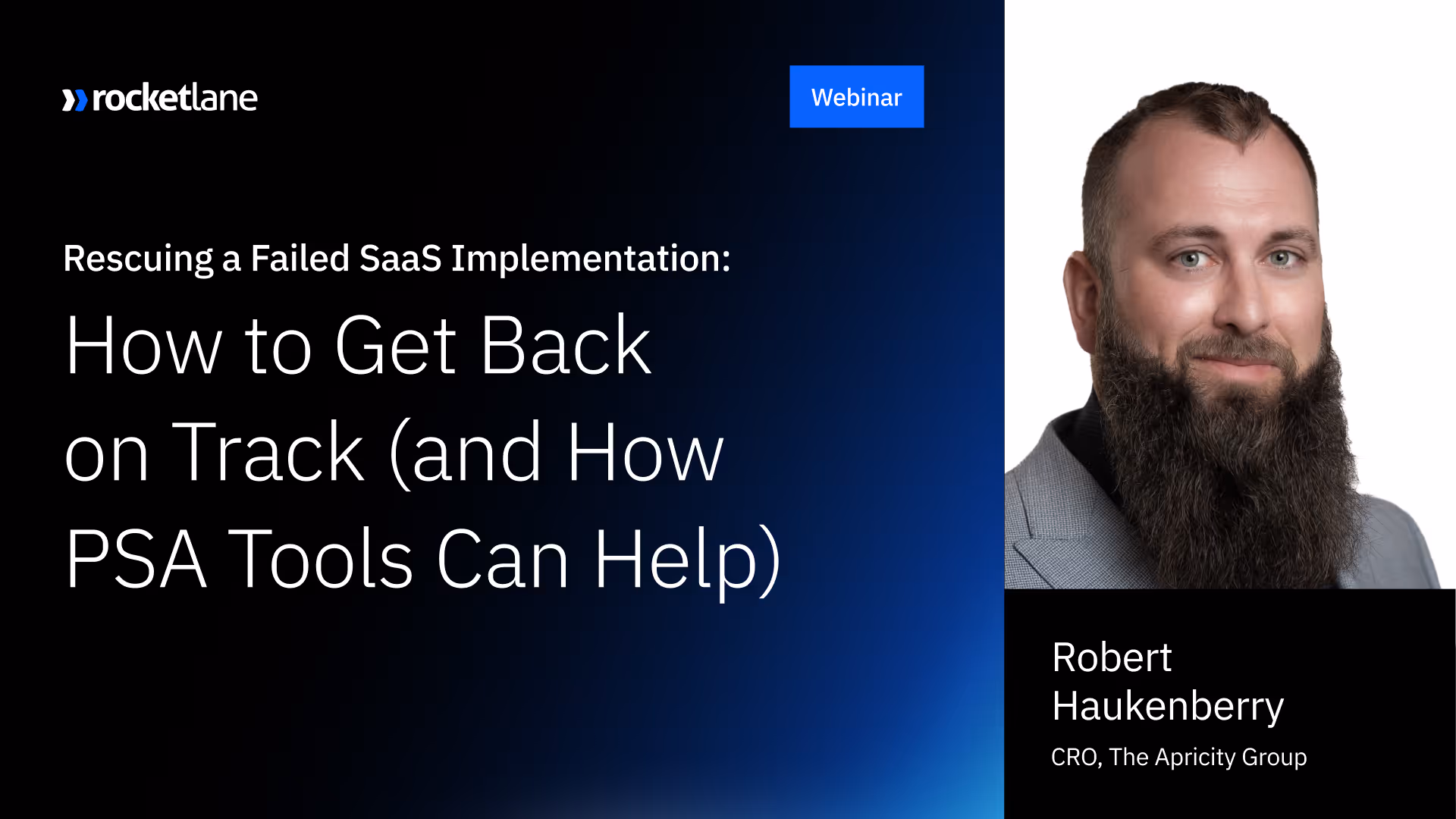 In a recent Rocketlane webinar, Robert Haukenberry, Chief Revenue Officer at Appreciate Group, shared his extensive experience leading professional services, process, and automation initiatives with Rocketlane and other professional service automation (PSA) tools. He outlined the early warning signs that signal a project is at risk, a step-by-step approach to rescue struggling implementations, and best practices to prevent future failures.