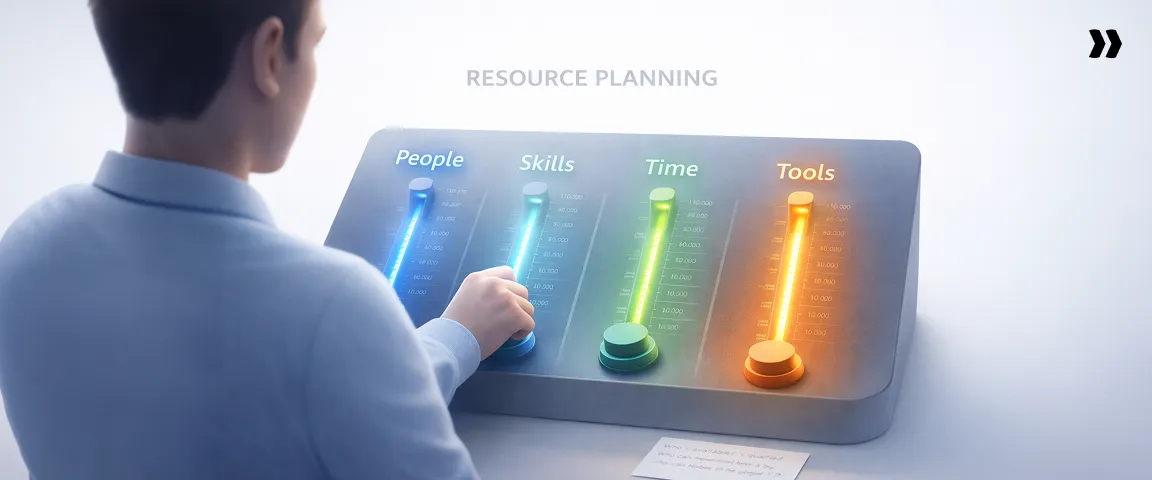 Resource planning functions as a continuous system rather than a sequence of isolated actions. Each step builds on the one before it, and gaps in earlier stages tend to propagate forward: ambiguity in scope produces misalignment in staffing, which produces forecasting errors, which surface as delivery and margin problems later.