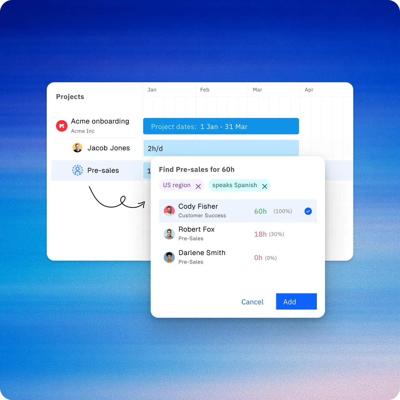 Rocketlane's Resource AI accurately forecasts demand and allocates resources. It can accurately predict future resource needs by analyzing historical data and project requirements. This invaluable insight empowers your team to make informed decisions and avoid resource shortages or overloads.