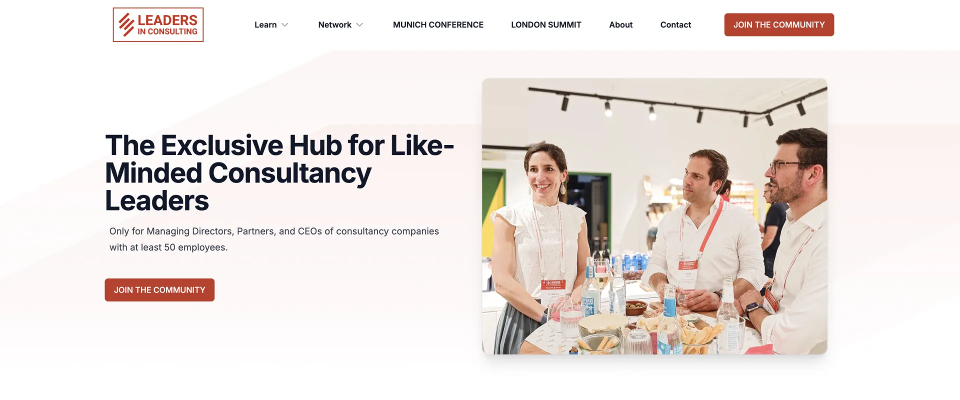 The Leaders in Consulting Conference is a strategy-focused event designed for consulting leaders navigating growth, differentiation, and firm scalability.