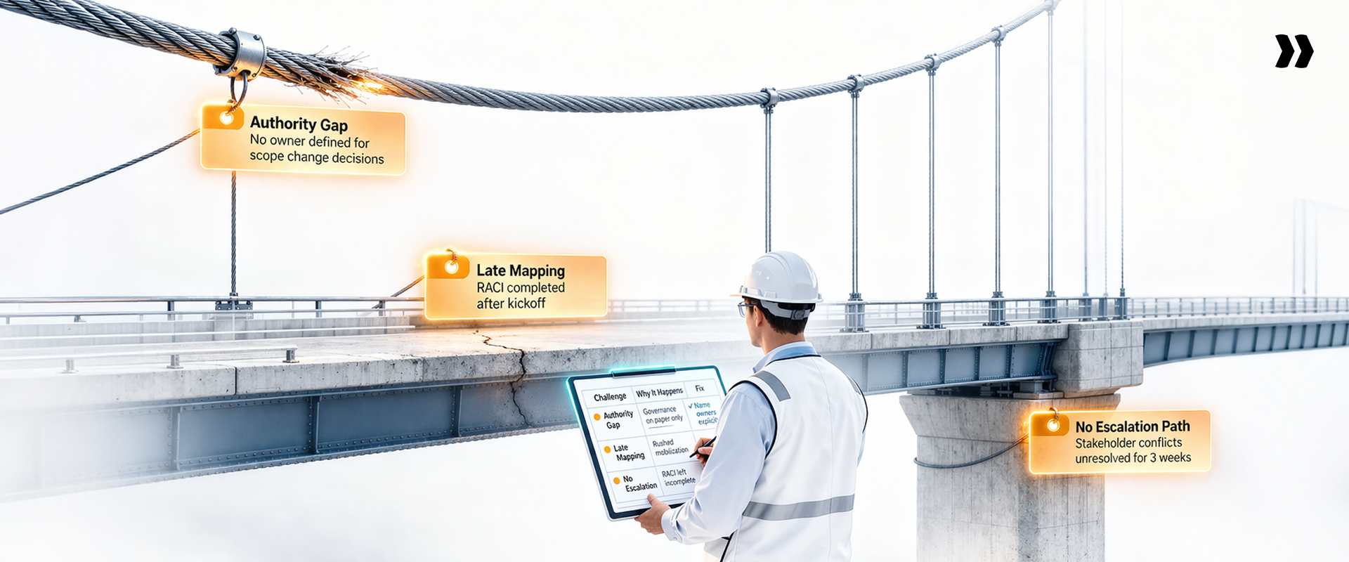 Most teams use RACI matrices to assign responsibilities, but fewer define how issues escalate when decisions stall. Explicit escalation paths prevent delivery teams from improvising decision structures under pressure.
