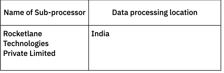 The following are group members of Rocketlane Inc. These entities function as sub-processors as well and provide support and maintenance.