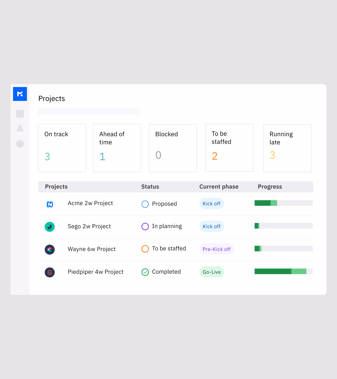 No more manual resource allocation in spreadsheets. Quickly bring together the right team for every project based on real-time availability, skillsets, and project needs.